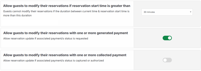 When enabled, guests can modify their reservation even after a payment has been captured or authorized. This provides the highest level of flexibility for guests who have already paid but need to make changes to their booking.