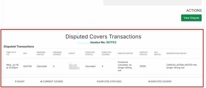 - The disputed transaction details will now appear in Dispute Transactions page and in the invoice view.