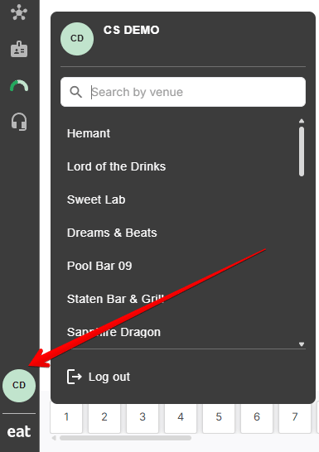 To switch between restaurants from the Table Manager, click the restaurant name or restaurant initials at the bottom of the left sidebar. This lets you move between venues easily and manage operations across your restaurants from one place.