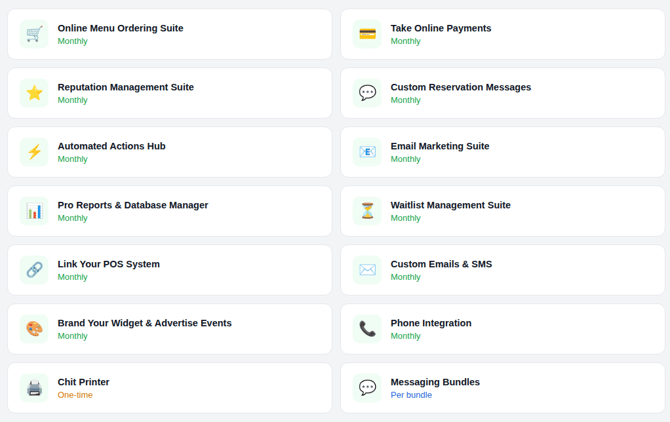 Add-ons let you unlock additional features and messaging credits on top of your base plan. Most add-ons are available to purchase directly through your account (self-serve), while some, such as API access and monthly SMS/WhatsApp plans, require assistance from our support team or your account manager.