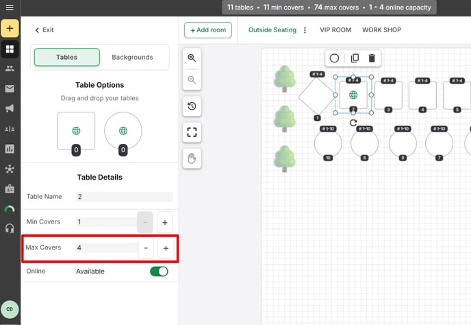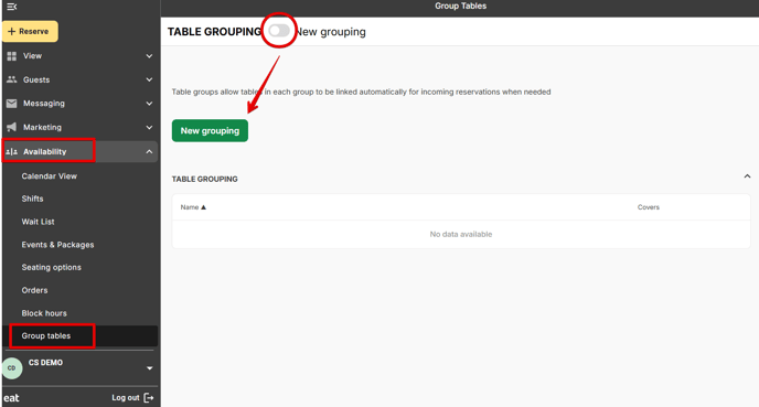 In the old table grouping setup, you must manually define which tables can be grouped together. The total number of covers available for a group is based on the combined maximum capacities of the tables in that group.